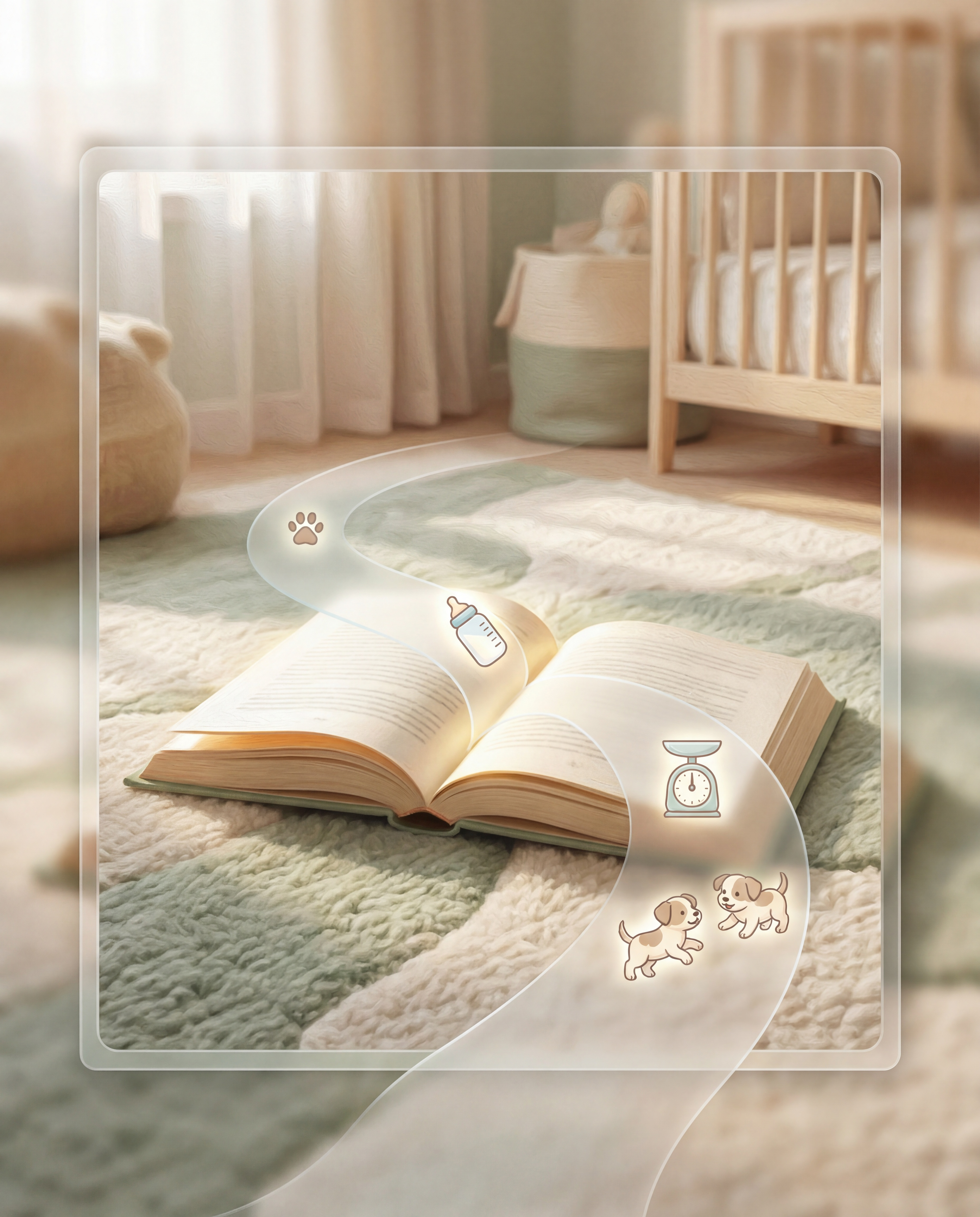 An 8-week guided journey from whelp day to placement. Day-by-day prompts so nothing slips through.